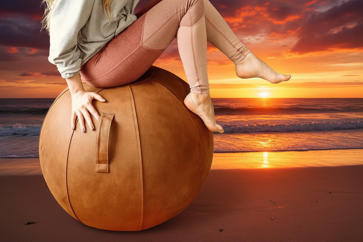 Grey Leather Sitting Chair ball SCB with handle and cover. Our 75cm ball for taller patrons.